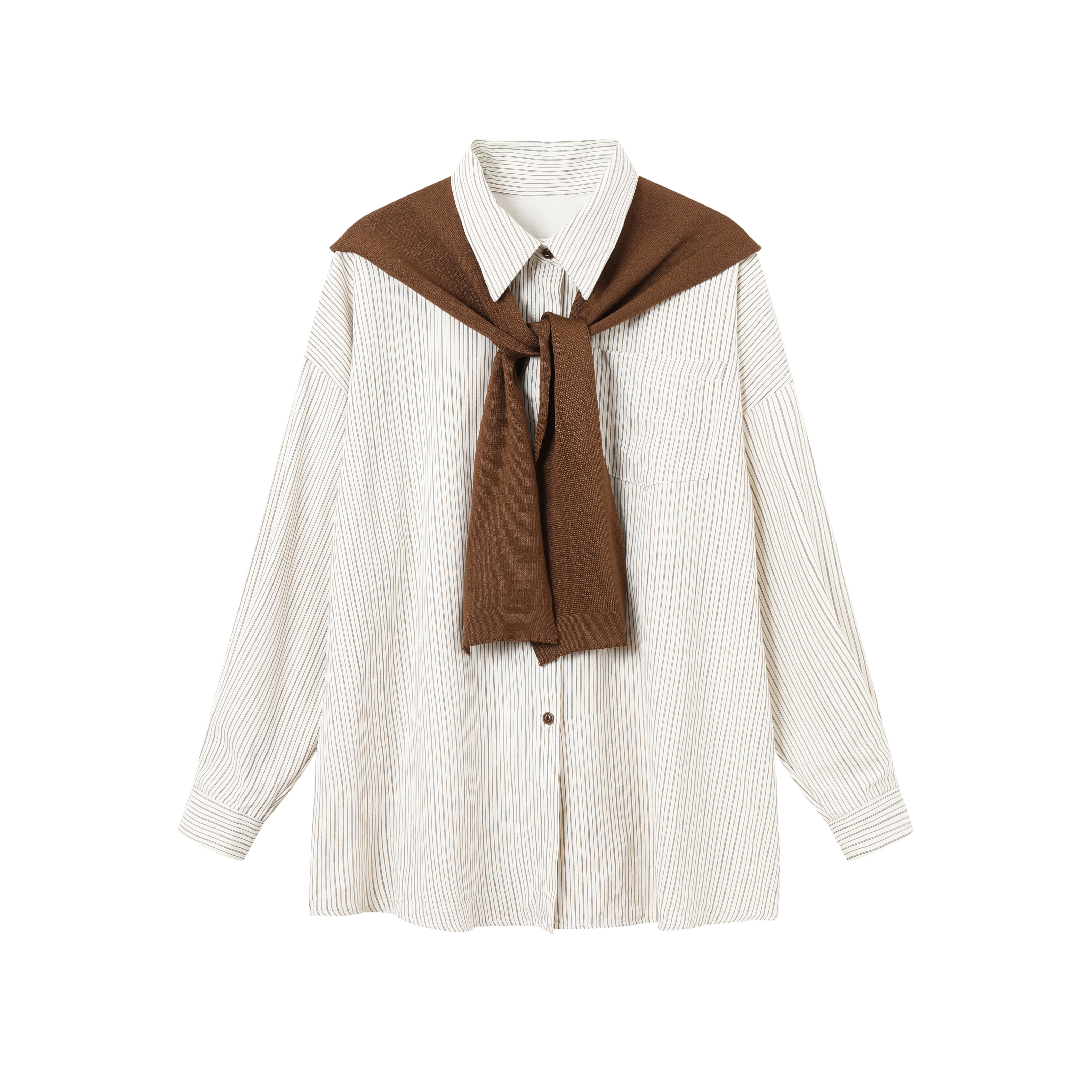 - Integrated Sweater Tie: Features a detachable brown knit sweater draped and tied at the front for added warmth and preppy charm.