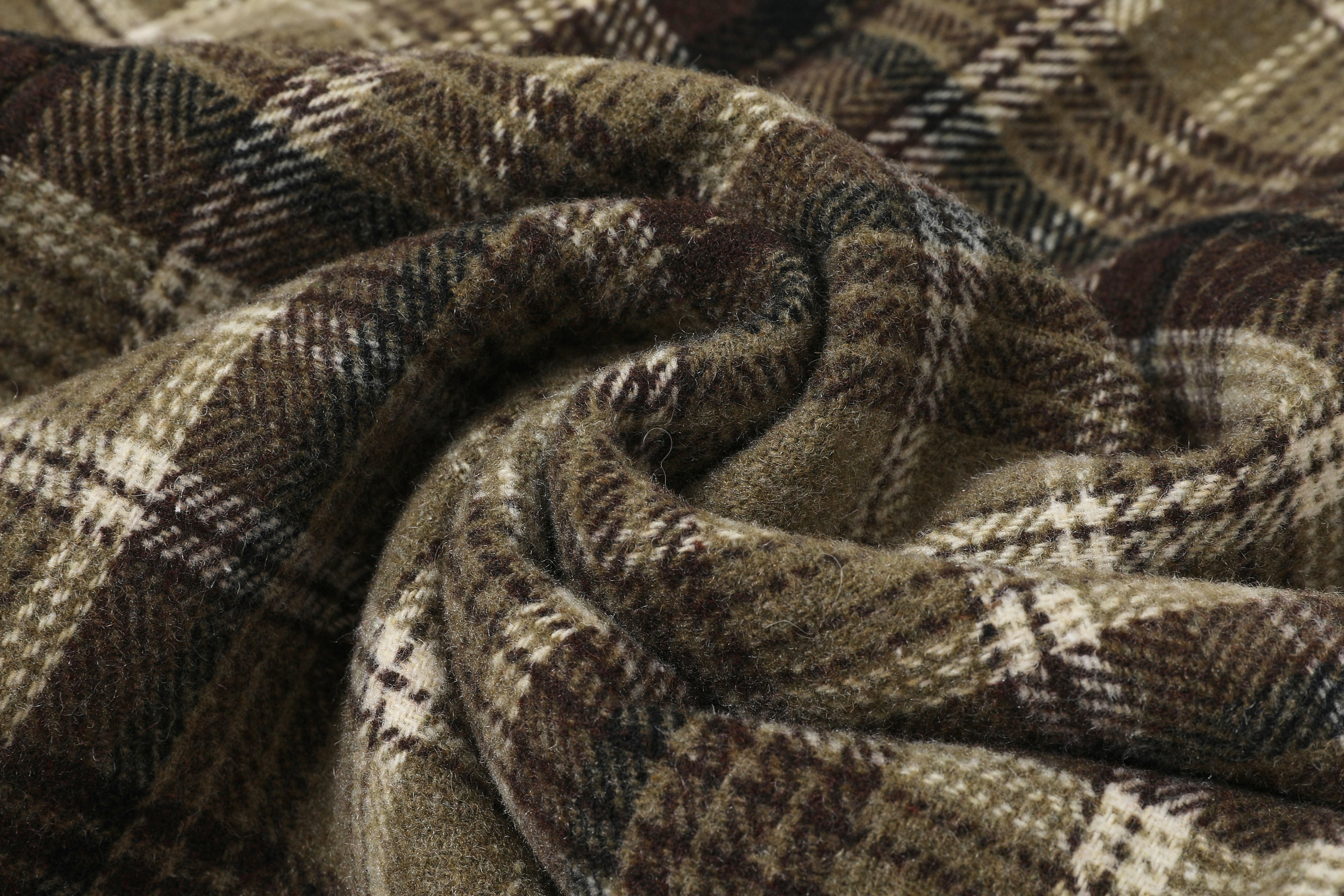 - Classic plaid pattern in earthy brown, beige, and white tones for a timeless, versatile style.